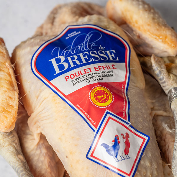 El pollo de Bresse (Francia), de la variedad Gauloise blanche o gala blanca, es reconocido mundialmente como el rey de las aves gracias a su excepcional calidad y a la tradición que lo rodea. Su alimentación complementada con leche en polvo le otorga el característico color de su piel y contribuye a una carne con matices únicos.
